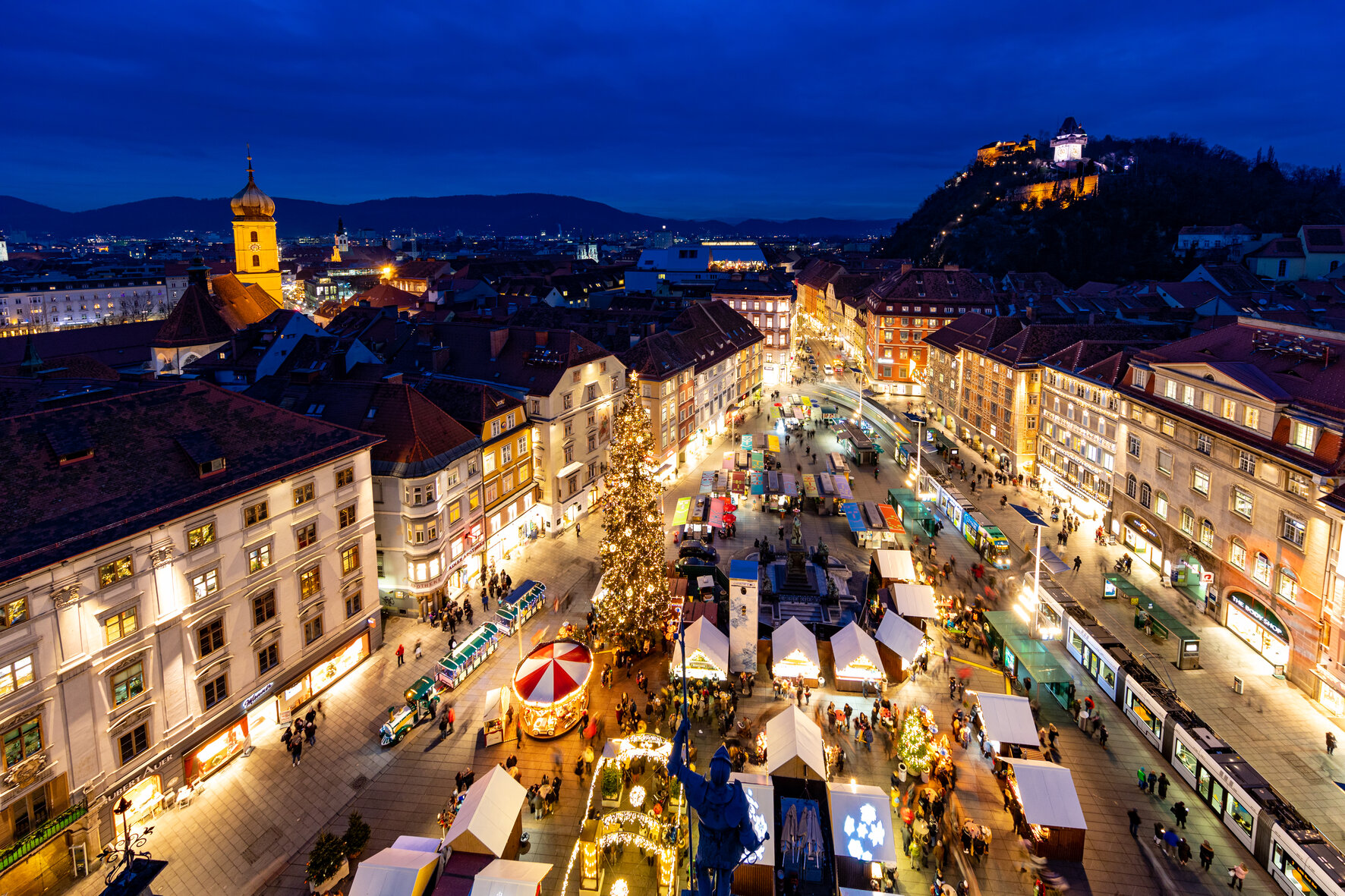 Anreise mit FrĂĽhstĂĽckspause in die Steiermark. Gegen Mittag erreichen wir unser Hotel in der Grazer Innenstadt und laden die Koffer aus. Im Anschluss dĂĽrfen wir die Hauptstadt der Steiermark im winterlichen Zauber bei einer entspannten StadtfĂĽhrung kennenlernen. Danach haben wir genug Zeit zur freien VerfĂĽgung um die Stadt auf eigene Faust noch ein wenig zu erkunden und fĂĽr ein individuelles Abendessen.