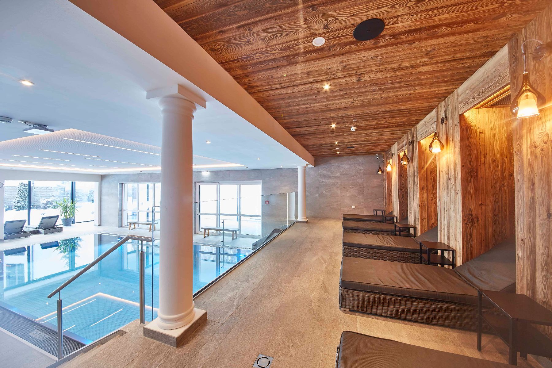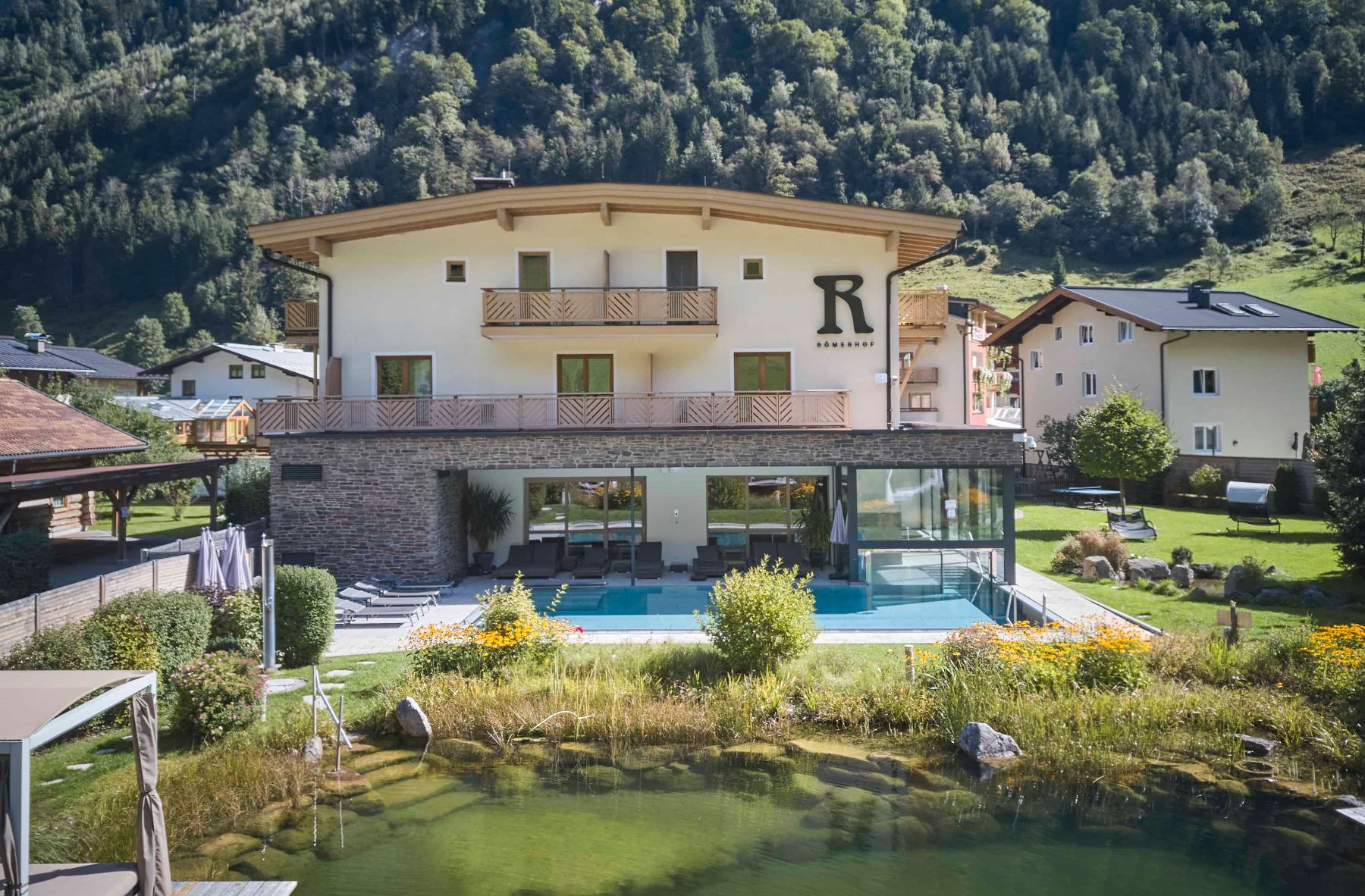 Das 4 Sterne Hotel Römerhof, umgeben von der majestätischen Berglandschaft, bietet Gästen eine einmalige Kombination aus Komfort, Gastfreundschaft und österreichischem Charme. Entspannen Sie im hoteleigenen Römerspa mit neuem Hallenbad mit Wasserfall und Gegenstromanlage, sowie neuem beheizter Außenpool mit Inneneinstieg und Sprudelliegen. Im Sommer können Sie sich im Naturbadeteich mit Liegewiese und Kneippanlage abkühlen. Das preisgekrönte Restaurant serviert eine exquisite Auswahl an lokalen und internationalen Gerichten, zubereitet mit den frischesten Zutaten. Genießen Sie ein gehobenes kulinarisches Erlebnis, während Sie den Panoramablick auf die alpine Landschaft genießen. Das Hotel verfügt über gut ausgestattete Zimmer, die stilvoll und komfortabel eingerichtet sind, um Ihren Aufenthalt so angenehm wie möglich zu gestalten. Alle Zimmer sind mit modernen Annehmlichkeiten wie kostenlosem WLAN, Flachbildfernseher und privaten Badezimmern ausgestattet. Einige bieten zudem einen atemberaubenden Blick auf die umliegenden Berge.